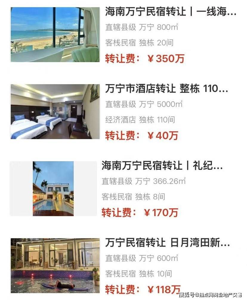 海南旅逛商场的连接升温发动了民宿及小型旅舍行业的迅疾繁荣。动作热门旅逛宗旨地,万宁以其特殊的海岸资源吸引了豪爽投资者。本文基于而今商场上公然的七处民宿/旅舍让与讯息,对其背后的商场逻辑、投资价格与潜正在危险实行领悟,以期为投资者供应参考。
